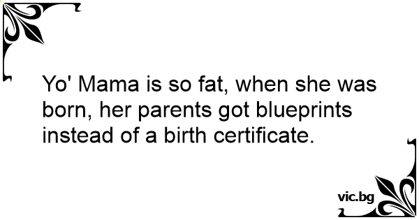 Yo' Mama is so fат, when she was born, her parents got blueprints instead of a birth certificate.