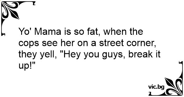 Yo' Mama is so fат, when the cops see her on a street corner, they yell, "Hey you guys, break it up!"