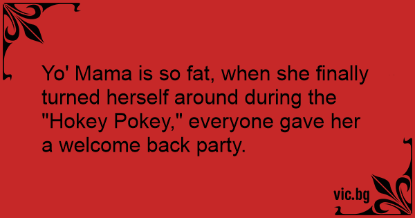 Yo' Mama is so fат, when she finally turned herself around during the "Hokey Pokey," everyone gave her a welcome back party.