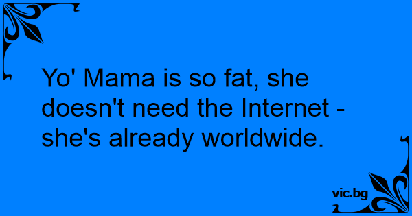 Yo' Mama is so fат, she doesn't need the Internet - she's already worldwide.
