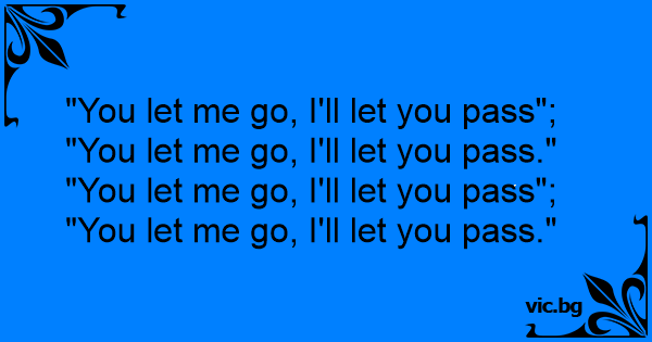 "You let me go, I'll let you pass"; "You let me go, I'll let you pass."
