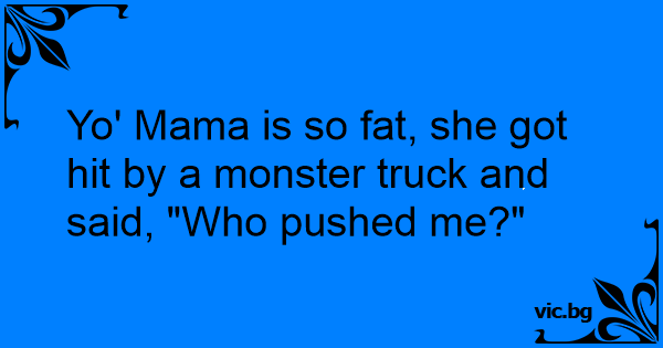 Yo' Mama is so fат, she got hit by a monster truck and said, "Who pushed me?"
