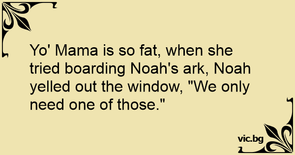 Yo' Mama is so fат, when she tried boarding Noah's ark, Noah yelled out the window, "We only need one of those."