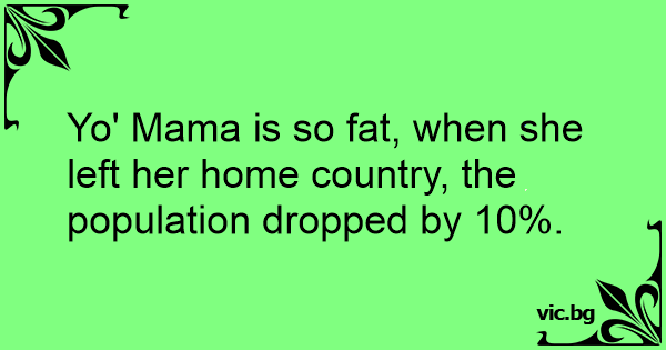 Yo' Mama is so fат, when she left her home country, the population dropped by 10%.