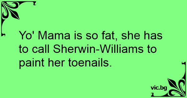 Yo' Mama is so fат, she has to call Sherwin-Williams to paint her toenails.