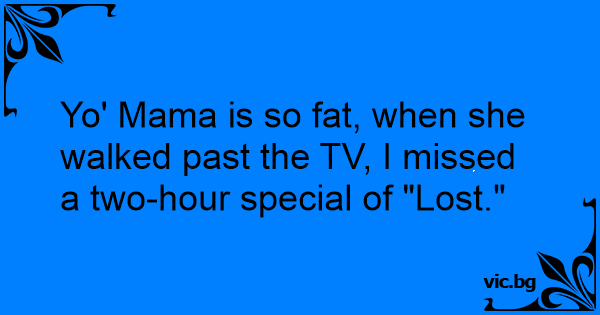 Yo' Mama is so fат, when she walked past the TV, I missed a two-hour special of "Lost."
