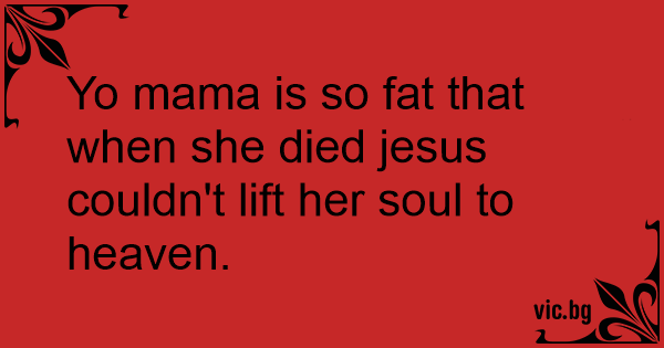 Yo mama is so fат that when she died jesus couldn't lift her soul to heaven.