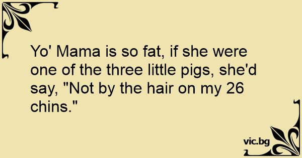 Yo' Mama is so fат, if she were one of the three little pigs, she'd say, "Not by the hair on my 26 chins."