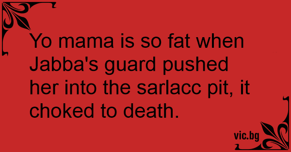 Yo mama is so fат when Jabba's guard pushed her into the sarlacc pit, it choked to death.