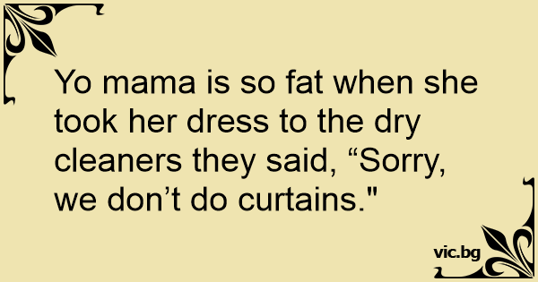 Yo mama is so fат when she took her dress to the dry cleaners they said, “Sorry, we don’t do curtains."