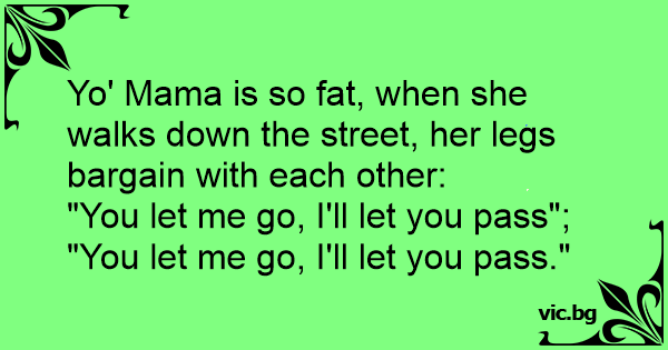 Yo' Mama is so fат, when she walks down the street, her legs bargain with each other: