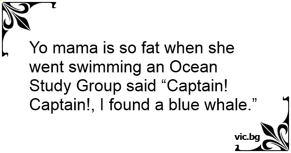 Yo mama is so fат when she went swimming an Ocean Study Group said “Captain! Captain!, I found a blue whale.”