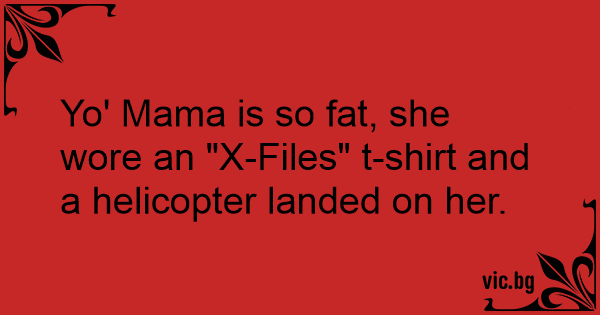 Yo' Mama is so fат, she wore an "X-Files" t-shirt and a helicopter landed on her.