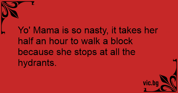 Yo' Mama is so nasty, it takes her half an hour to walk a block because she stops at all the hydrants.
