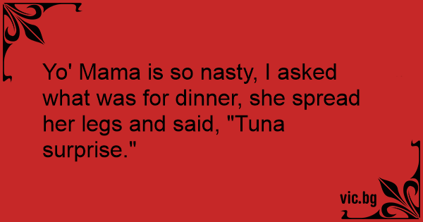 Yo' Mama is so nasty, I asked what was for dinner, she spread her legs and said, "Tuna surprise."