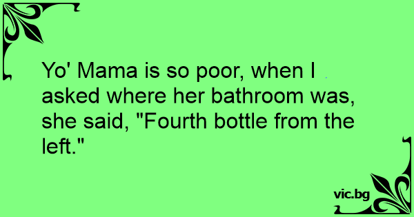Yo' Mama is so poor, when I asked where her bathroom was, she said, "Fourth bottle from the left."