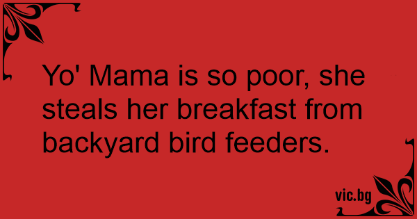 Yo' Mama is so poor, she steals her breakfast from backyard bird feeders.