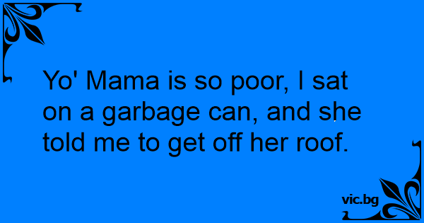 Yo' Mama is so poor, I sat on a garbage can, and she told me to get off her roof.