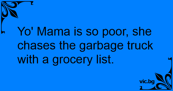 Yo' Mama is so poor, she chases the garbage truck with a grocery list.