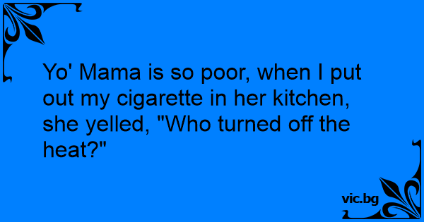 Yo' Mama is so poor, when I put out my cigarette in her kitchen, she yelled, "Who turned off the heat?"