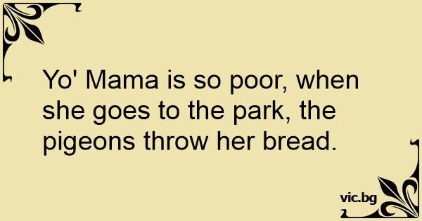 Yo' Mama is so poor, when she goes to the park, the pigeons throw her bread.