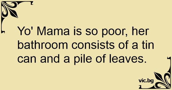 Yo' Mama is so poor, her bathroom consists of a tin can and a pile of leaves.