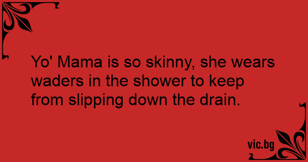 Yo' Mama is so skinny, she wears waders in the shower to keep from slipping down the drain.