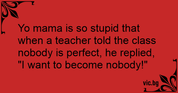 Yo mama is so sтuрid that when a teacher told the class nobody is perfect, he replied, "I want to become nobody!"