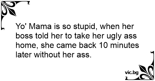 Yo' Mama is so sтuрid, when her boss told her to take her ugly аss home, she came back 10 minutes later without her аss.<br />