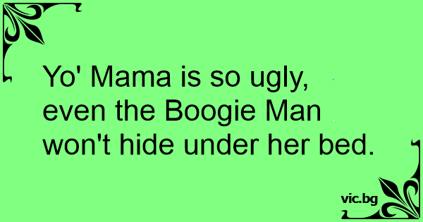 Yo' Mama is so ugly, even the Boogie Man won't hide under her bed.