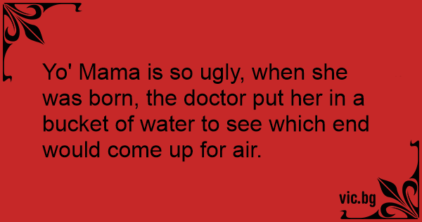 Yo' Mama is so ugly, when she was born, the doctor put her in a bucket of water to see which end would come up for air.