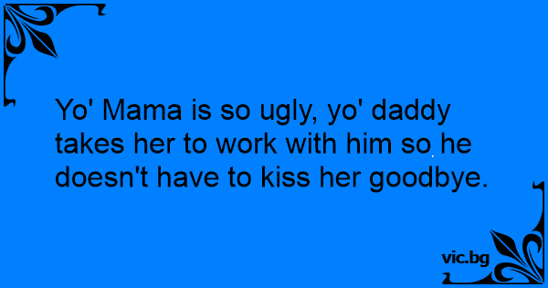 Yo' Mama is so ugly, yo' daddy takes her to work with him so he doesn't have to kiss her goodbye.