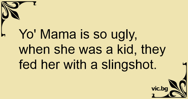 Yo' Mama is so ugly, when she was a kid, they fed her with a slingshot.
