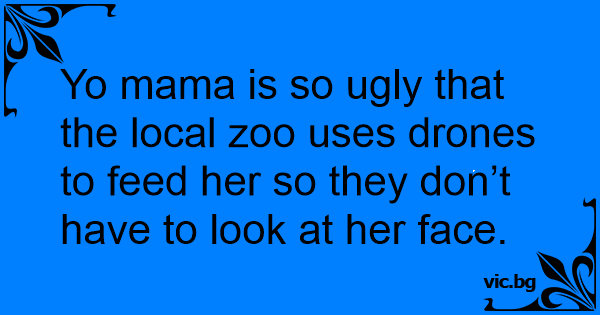 Yo mama is so ugly that the local zoo uses drones to feed her so they don’t have to look at her face.