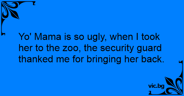 Yo' Mama is so ugly, when I took her to the zoo, the security guard thanked me for bringing her back.