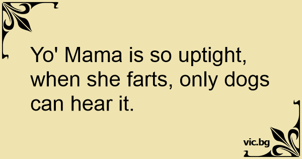 Yo' Mama is so uptight, when she farts, only dogs can hear it.