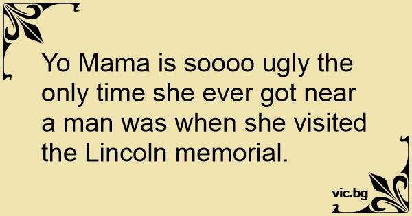 Yo Mama is soooo ugly the only time she ever got near a man was when she visited the Lincoln memorial.