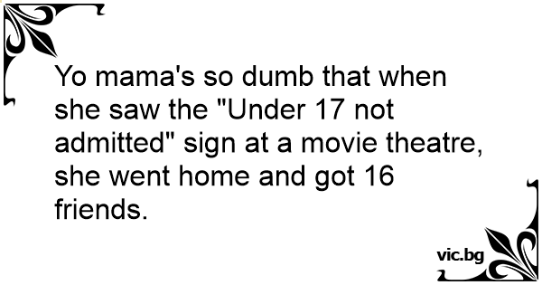 Yo mama's so dumb that when she saw the "Under 17 not admitted" sign at a movie theatre, she went home and got 16 friends.