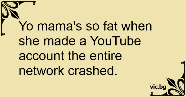 Yo mama's so fат when she made a YouTube account the entire network crashed.