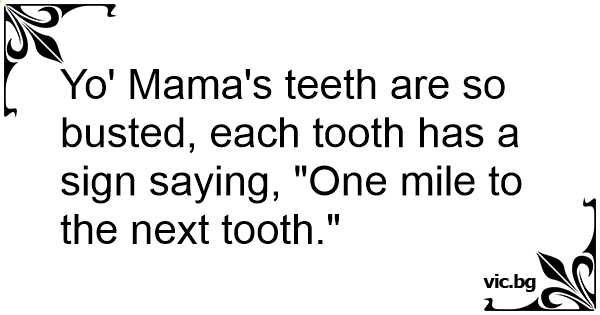 Yo' Mama's teeth are so busted, each tooth has a sign saying, "One mile to the next tooth."