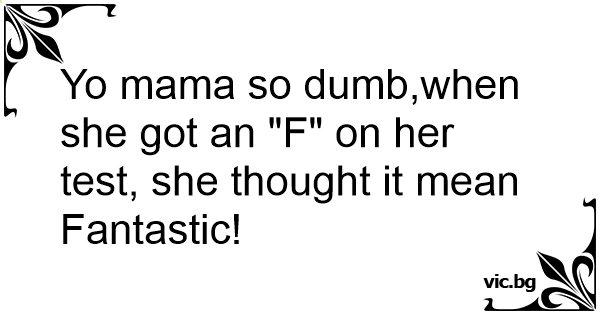 Yo mama so dumb,when she got an "F" on her test, she thought it mean Fantastic!