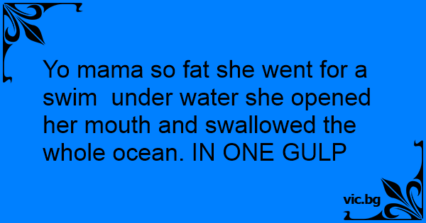 Yo mama so fат she went for a swim under water she opened her mouth and swallowed the whole ocean. IN ONE GULP