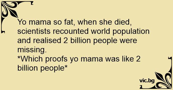Yo mama so fат, when she died, scientists recounted world population and realised 2 billion people were missing.