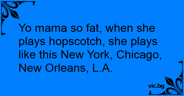 Yo mama so fат, when she plays hopscotch, she plays like this New York, Chicago, New Orleans, L.A.