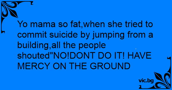Yo mama so fат,when she tried to commit suicide by jumping from a building,all the people shouted"NO!DONT DO IT! HAVE MERCY ON THE GROUND