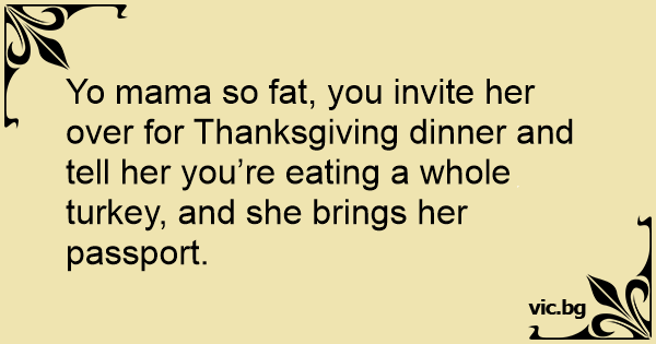 Yo mama so fат, you invite her over for Thanksgiving dinner and tell her you’re eating a whole turkey, and she brings her passport.