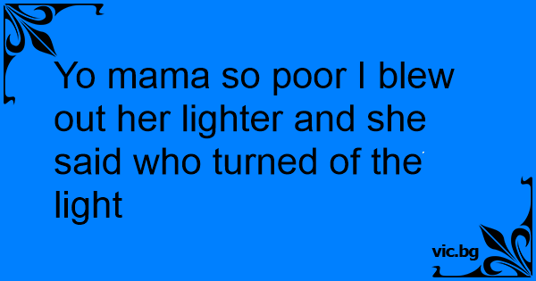 Yo mama so poor I blew out her lighter and she said who turned of the light