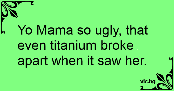 Yo Mama so ugly, that even titanium broke apart when it saw her.