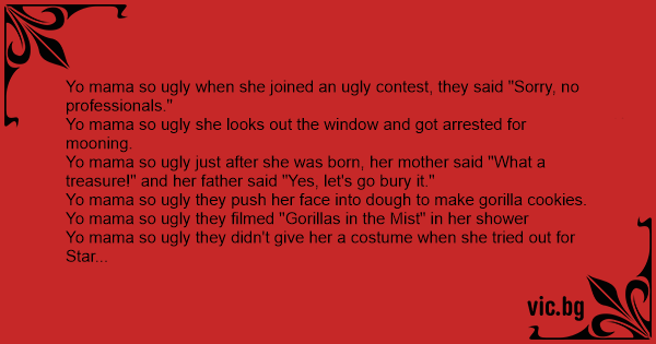 Yo mama so ugly when she joined an ugly contest, they said "Sorry, no professionals."