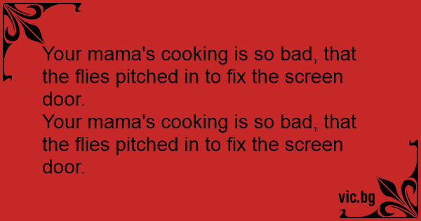 Your mama's cooking is so bad, that the flies pitched in to fix the screen door.
